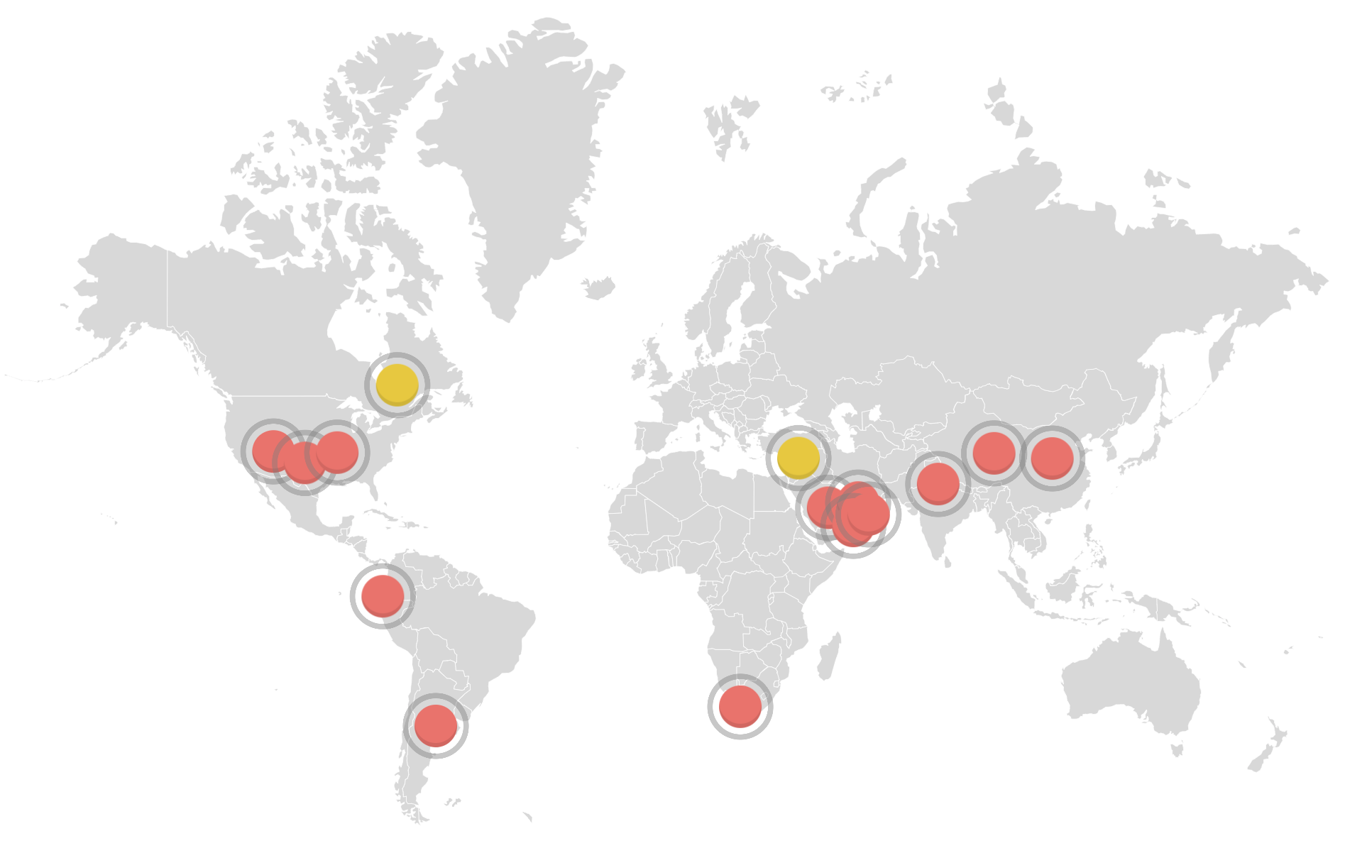 click the interactive map markers for details on just a few of the many reported incidents worldwide.